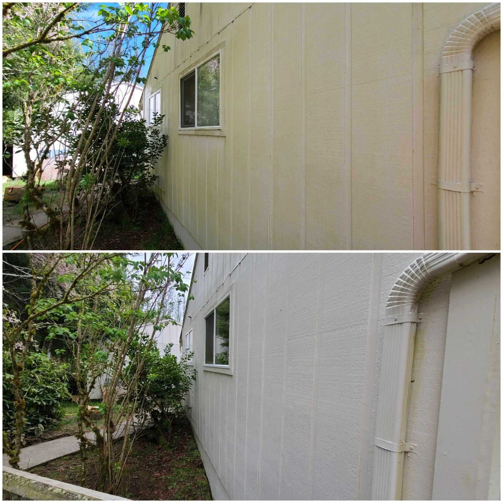 Low pressure cleaning solutions for your entire home. Our softwash service includes cleaning Siding, Facia board, Eves, Garage doors, Dormers and more! Package it with windows or gutter brightening for awesome results.
